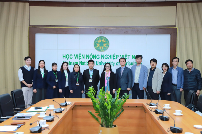 Following the courtesy meeting, the two sides discussed opportunities for student exchange programs and research collaboration in the field of agriculture. VNUA’s President highly appreciated and was impressed by the achievements of the College of Agriculture and Life Sciences, Chonnam National University, and emphasized that the two institutions had gradually built a cooperative relationship. The representatives of the College of Agriculture and Life Sciences, CNU, expressed their sincere thanks for the warm hospitality and shared their positive impressions of the modern and well-developed campus of VNUA.